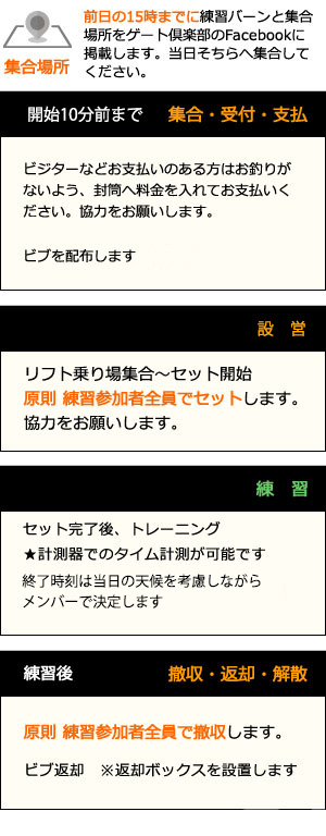 - ③効率の良いトレーニング環境を守るためにゲートセットや撤収などに協力します